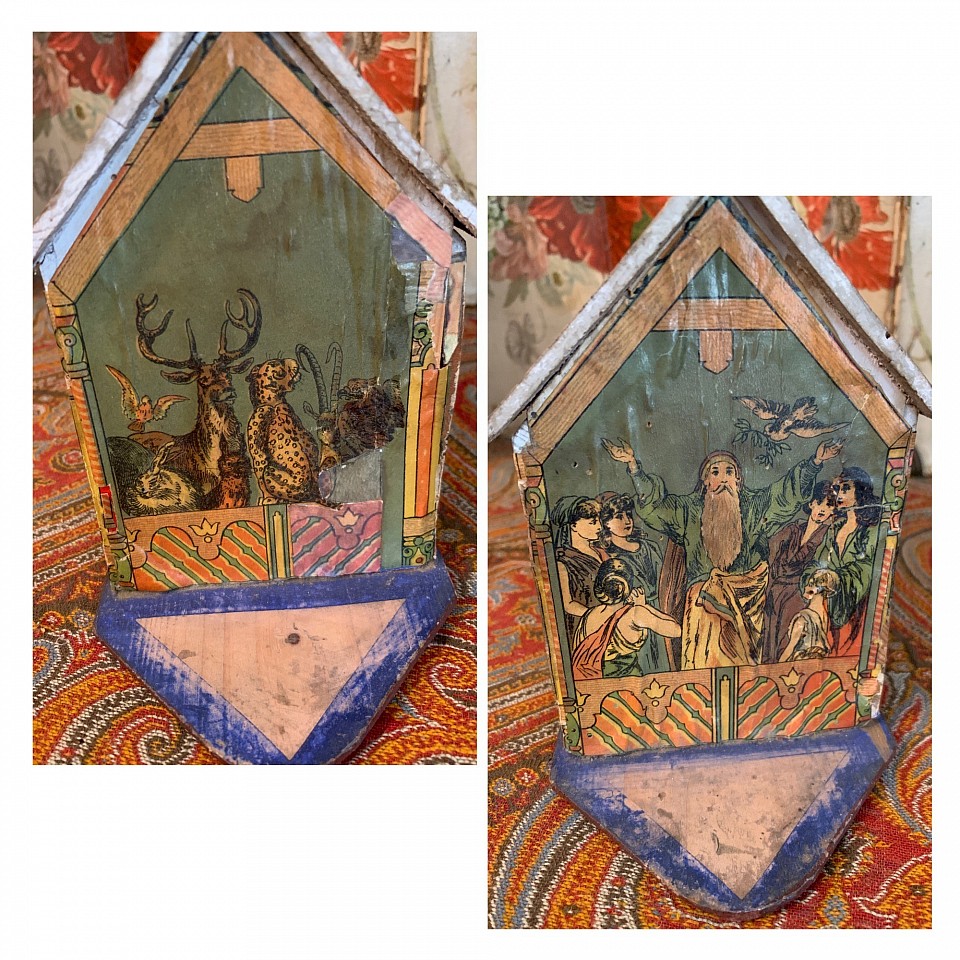 Here we have an interesting Erzgebirge Wooden Ark, with interesting coloring and decorations. Germany ca. 1880-1890