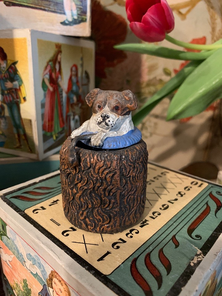 Sweet money bank made of pressed and lithographed tin plate, very nice litho of playing kids and Bonzo comic dog. Germany ca. 1930’s